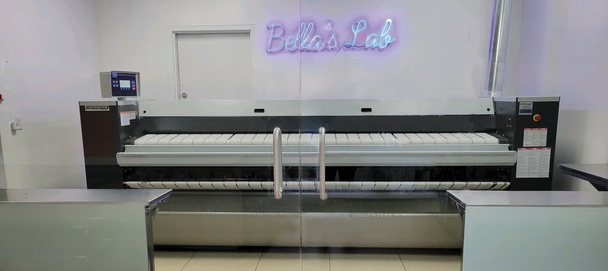 Sparklean Laundry, near Palm Springs, Calif., eliminated a second bathroom, removed two stack dryers and relocated a wall to accommodate their ironer, which was installed in the middle of the laundry surrounded by floor-to-ceiling glass. It not only dries, irons and partially folds tablecloths up to 10 feet in diameter, king sheets, king duvets, pillowcases and napkins, it single-handedly opened the doors to new business. As a result of this surge, Sparklean Laundry added a third shift to process its 8,000 pounds of commercial and residential WDF per week.