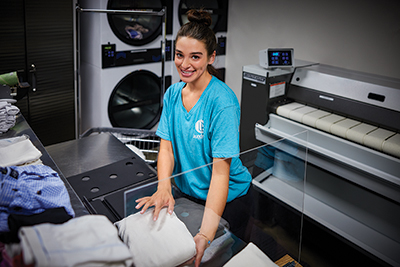 Next, consider adding a flatwork ironer to further catapult customer and account opportunity. Your laundry can quickly and automatically iron linens, making your laundry service attractive to clients that were previously unserviceable. Now you can take on clients and provide them with perfectly finished linens.